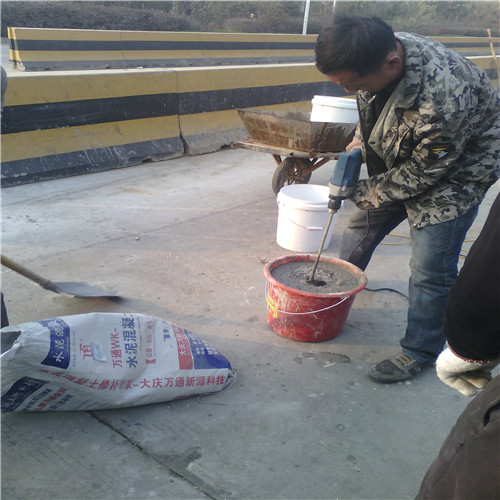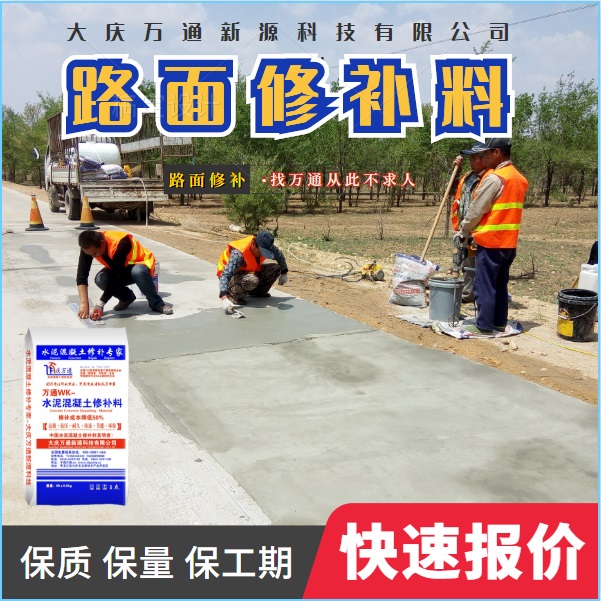大慶萬通新源科技有限公司獨有的混凝土路面高強速補料,是水泥混凝土路面病害修復的好材料。疲勞、凍融循環(huán)、彎曲壓力、滲水和基層破壞等原因都會引起水泥路面的破損,從而帶來高昂的維護費用。與以往的剛性修補方法不同,混凝土水泥路面維修速補膠提供了一種獨特的柔性修補產(chǎn)品和技術,高柔性、高抗拉性,可跨伸縮縫施工和高抗壓性使得混凝土快補產(chǎn)品為水泥混凝土路面提供了******性的修補。傳統(tǒng)的剛性修補方案,如環(huán)氧砂漿和快干水泥產(chǎn)品,由于其自身的粘結失效,抗疲勞性低以及與原路面不同的伸縮系數(shù),修補面會在短時間內(nèi)失效或產(chǎn)生新的裂縫,需要反復修補,有效期短且費用高昂。大慶萬通新源科技有限公司的混凝土水泥路面維修速補膠可以隨原路面一起伸縮,移動,從而避免了粘結失效和產(chǎn)生新裂縫。萬通快補產(chǎn)品優(yōu)異的粘結性、柔韌性和高防滑性,特別適用于水泥路面的淺層粘合修補,多邊角混凝土板層修補,跨伸縮縫修補以及路面沉陷修補。萬通混凝土病害修補料針對混凝土起皮起沙、斷板裂縫、蜂窩麻面、坑槽露石子、漏筋掉皮、橋梁的掉皮漏筋快速通車使用時間長。應用萬通快補產(chǎn)品,施工后一天就可以恢復交通。大慶萬通新源科技有限公司的萬通水泥路面維修速補膠適用于高速公路、機場路面、農(nóng)村村村通路面、廠坪、學校操場、市區(qū)公路、小區(qū)路面、橋梁、水泥路面的修補。使用萬通特快補材料修補路面可以一勞永逸! 水泥地面起砂怎么辦,混凝土修補劑混凝土地面起砂,混凝土地面修補,地面起砂怎么辦,